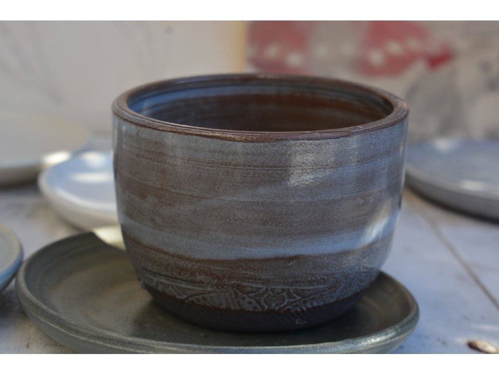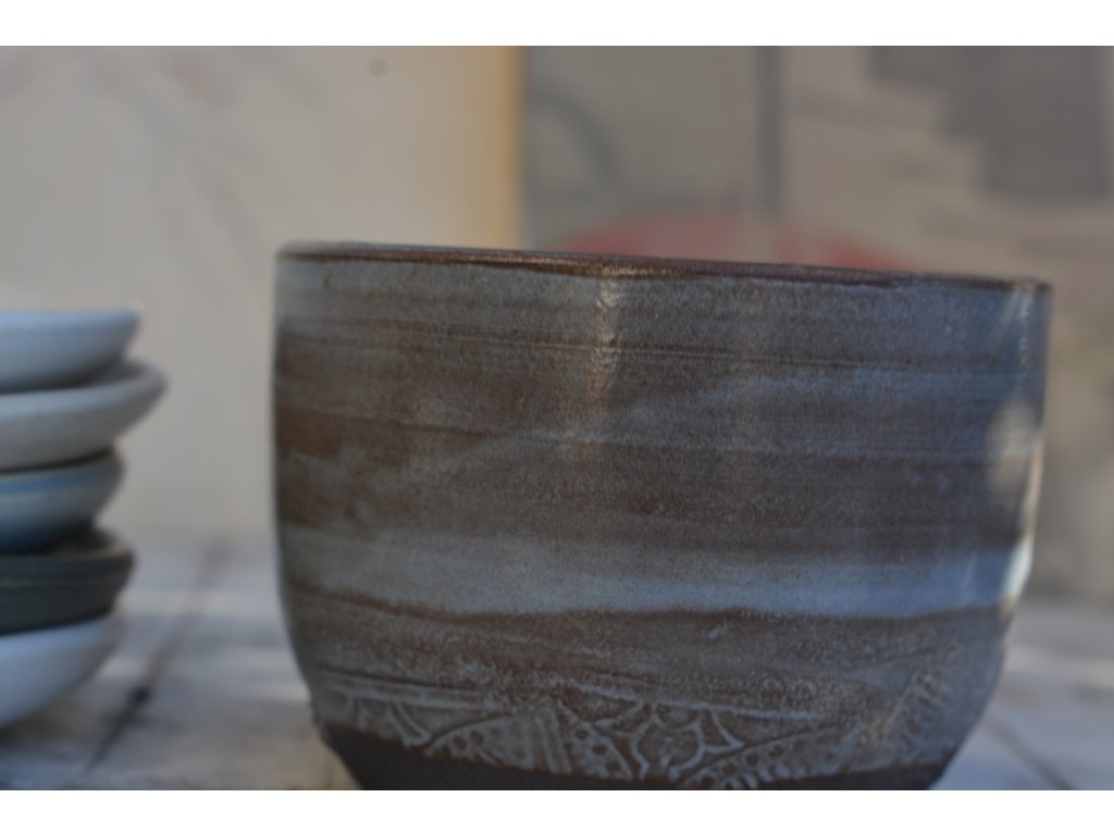 Fialový pohárek z černé hlíny, s mandalkou, 200 ml